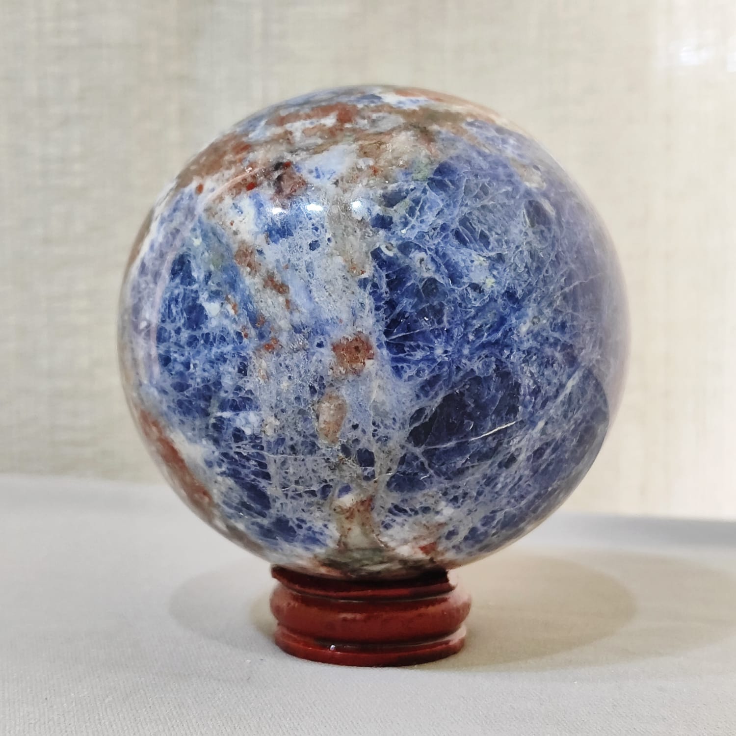 Esfera de Sodalita com inclusão de musgo, Hematoide e quartzo